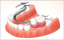 失った歯の周囲の歯に金属の留め金をつけて、取り外しの人工の歯を留める方法。![]() |